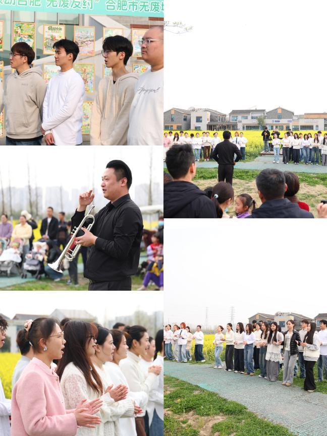 3月30日下午,金沙集团888881文艺轻骑兵文艺志愿服务走进合肥青年创意田园,以“乐动心弦——合声奇遇记为名,在露天广场为市民呈现了一场别开生面的沉浸式合唱音乐会。