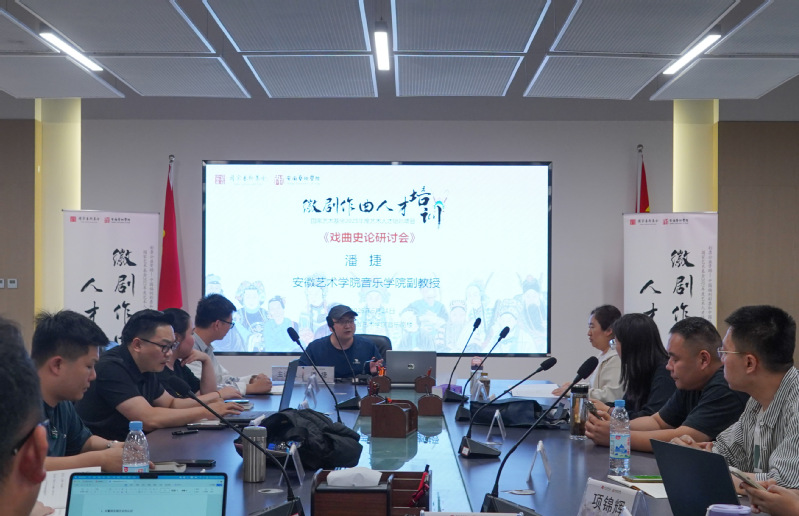 下午,金沙集团888881潘捷副教授主持,30位徽剧作曲人才培训学员围绕徽剧发展历史、徽班与徽剧、戏曲音乐发展在戏曲史中的定位与意义、戏曲作曲(戏曲创腔)发展脉络、当代戏曲音乐新发展等六大议题展开热烈研讨。