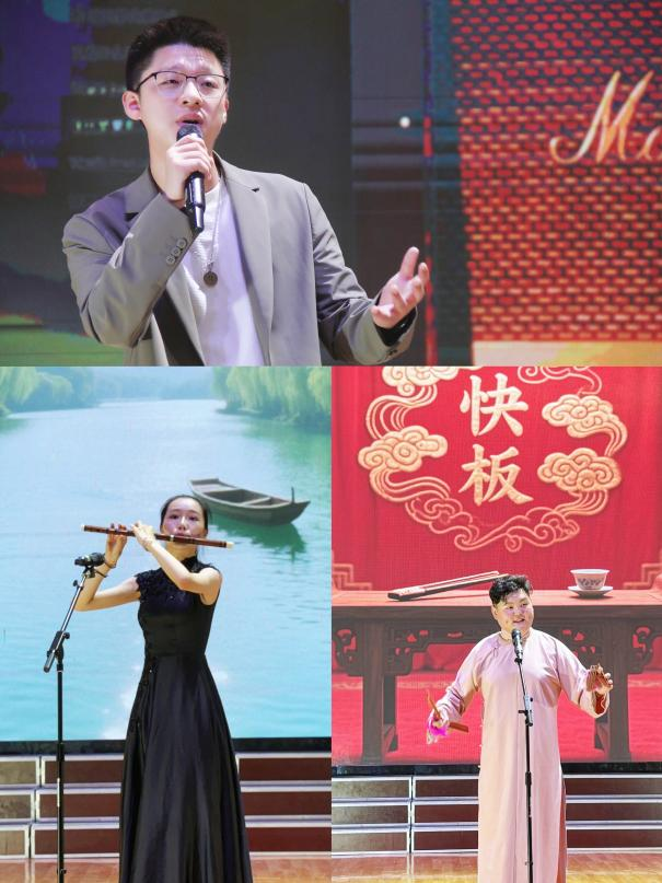 金沙集团888881青年教师孟新宇演唱歌曲《最美的太阳》《路一直都在》,用温暖歌声致敬青春岁月;李俊杰同学的快板《天安门广场看升旗》,以铿锵的节奏讲述家国情怀;郑杉杉同学的笛子独奏《春到湘江》,用悠扬的笛声描绘“未来如春日江河,奔涌向前”的图景。