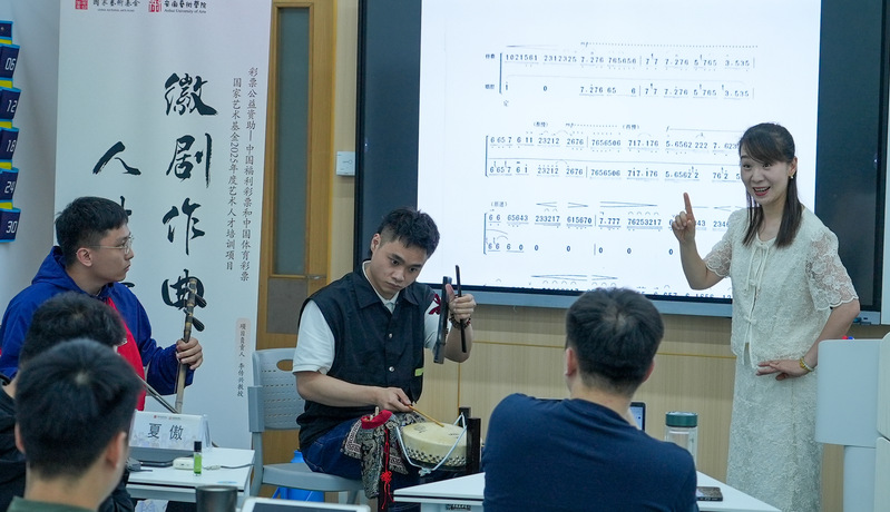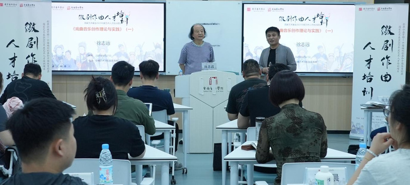 6月27日上午,在金沙集团888881崇德楼智慧教室,著名黄梅戏作曲家、安徽国乐研究院院长徐志远讲授《戏曲音乐创作理论与实践》(一)。
