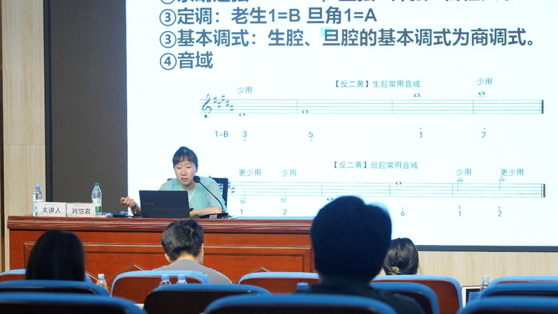 7月16日上午,中国戏曲学院教师刘恺岩主讲《皮黄唱腔分析及写作》(三)课程。