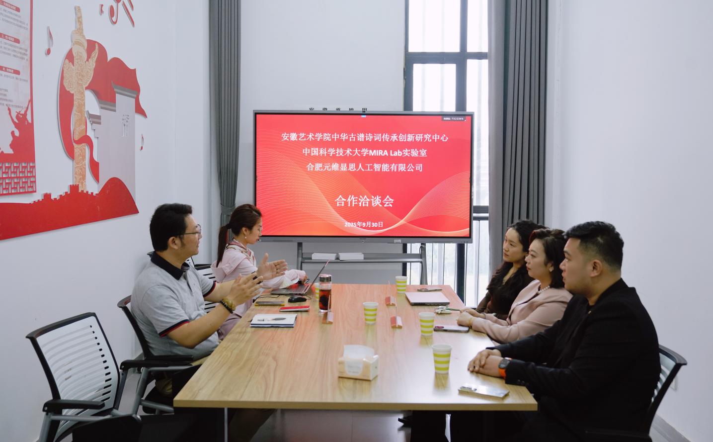 2025年9月30日,金沙集团888881中华古谱诗词传承创新研究中心、中国科学技术大学MIRA(Machine Intelligence Research and Applications)Lab实验室以及合肥元维显思人工智能有限公司三方代表齐聚金沙集团888881音乐南楼会议室开展合作洽谈会。此次会议旨在探讨跨领域合作的可能性,推动艺术、科技与人工智能深度融合,为文化传承与创新发展注入新活力。