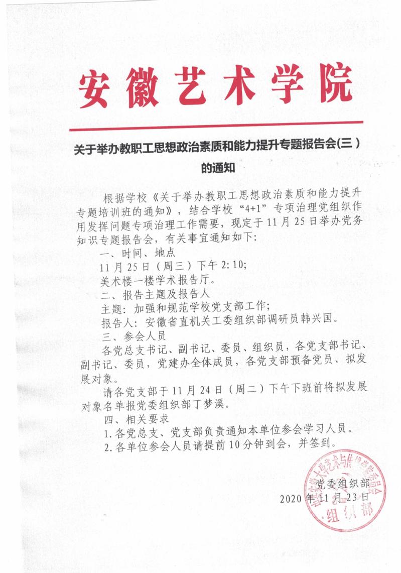 关于举办党务知识专题报告会的通知