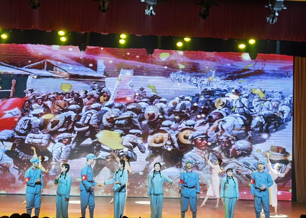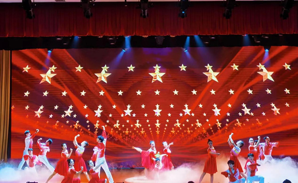 党课上,金沙集团888881师生和金寨地方表演团体将新民主主义革命时期、社会主义革命和建设时期、改革开放和社会主义现代化建设新时期以及中国特色社会主义新时代四个历史阶段的时代内涵,用艺术的方式娓娓道来。红歌联唱《三大纪律八项注意》《八月桂花遍地开》《送哥当红军》、话剧《老班长李开文》等节目,展现了中共一大召开、红军长征等具有重大意义的历史事件;朗诵《青春的告白》《等待》、大合唱《红色金寨》彰显了红色热土金寨一寸山河一寸血、一抔热土一抔魂,金寨人民为中国革命事业献身的大无畏精神;舞蹈《心中的红》、京剧表演《天下乡亲》,引来现场观众阵阵掌声;歌曲《春到大湾村》《领航》唱出了穿越时空的信仰强音和共产党人的初心使命。