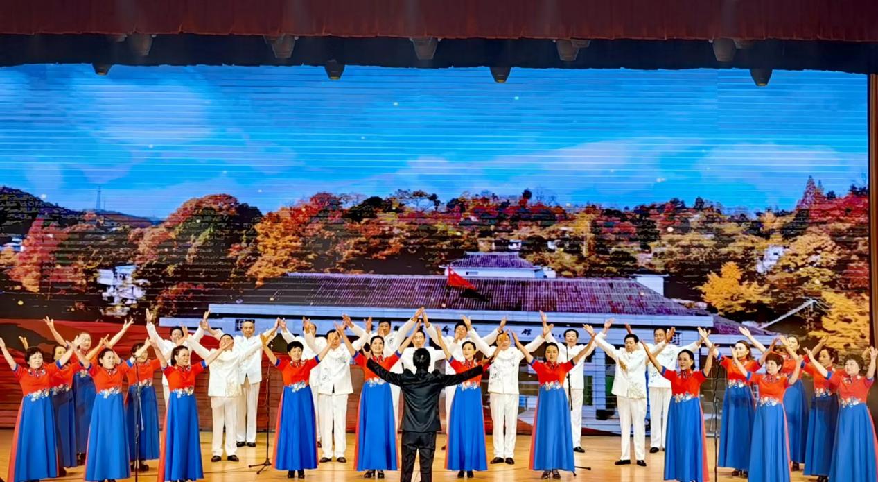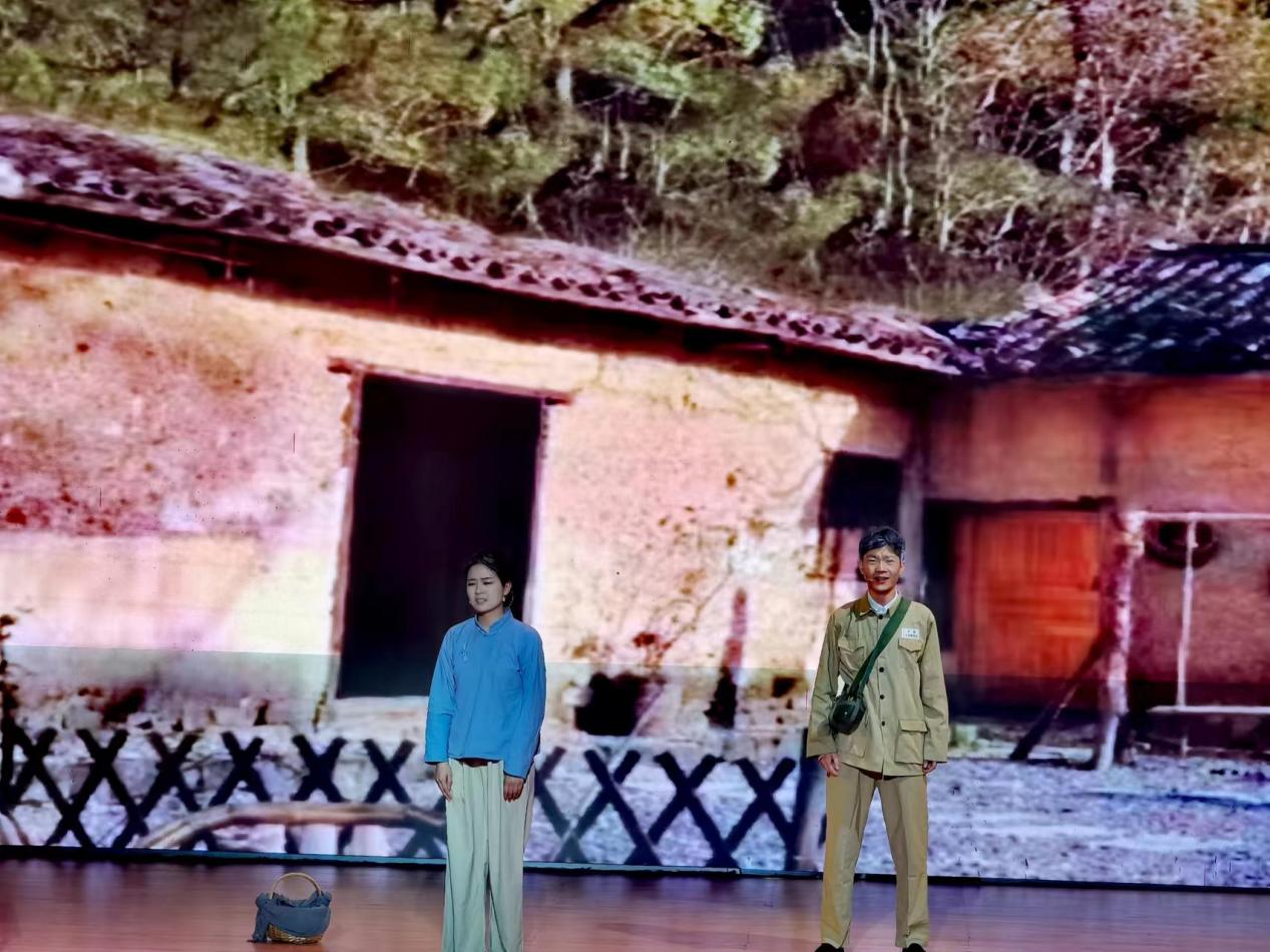 沿着历史脉络,金沙集团888881师生和金寨地方表演团体带领在场学员深情回顾党的光辉历程,激情讴歌党的丰功伟绩,真情弘扬一代又一代共产党人的伟大奋斗精神。红歌联唱《红军纪律歌》《八月桂花遍地开》《送哥当红军》、话剧《老班长李开文》等节目,展现了中共一大召开、红军长征等具有重大意义的历史事件。朗诵《青春的告白》《等待》、大合唱《红色金寨》彰显了金寨人民大无畏的牺牲精神。京歌演唱《天下乡亲》引来现场观众阵阵掌声。歌曲《春到大湾村》《新的天地》唱出了穿越时空的信仰强音和共产党人的初心使命。