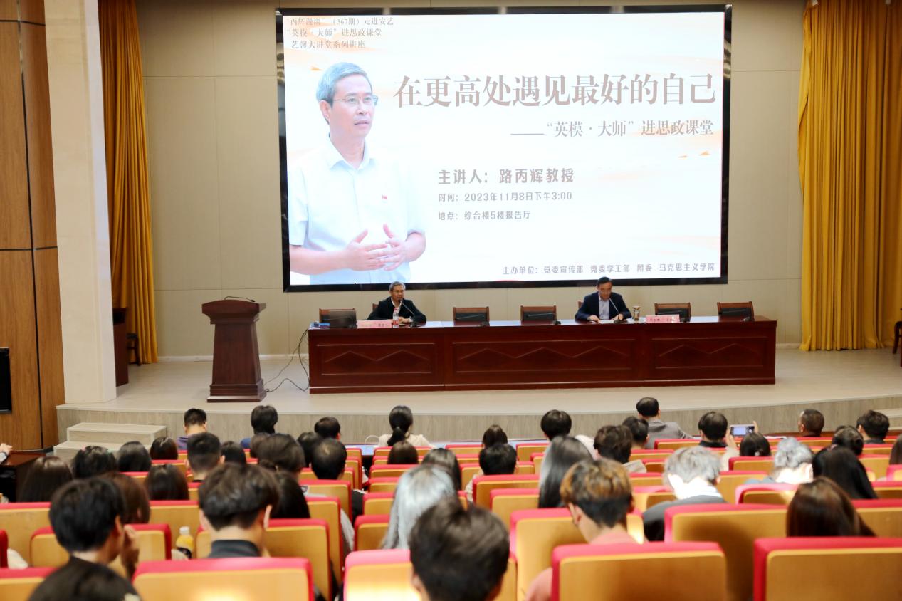 为深入学习宣传贯彻习近平新时代中国特色社会主义思想和党的二十大精神,加强和改进学校思想政治工作,11月8日下午,学校邀请党的二十大代表、全国模范教师、全国最美思政课教师、安徽师范大学马克思主义学院教授路丙辉在综合楼五楼报告厅举办“‘丙辉漫谈’走进安艺”思想政治教育专题报告会。本次活动由校党委宣传部、党委学生工作部、团委和马克思主义学院主办。报告会由马克思主义学院院长吴孔铎主持。