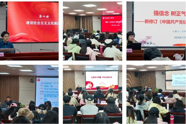 专题讲座由学院党委书记韩军,安徽省委党史研究院副院长杨继祥,安徽大学经济学院副教授方沫东,省委教育工委组织干事处原一级调研员朱晓明,学院党委委员、组织部 (党校)部长(副校长)王琍琍,办公室主任吕中华,马克思主义学院院长吴孔铎等校内外专家担任授课教师,结合习近平文化思想的学习与文化自信的坚定、安徽历史与新时代青年的担当、中国共产党历史上的重要会议、新党章的学习与实践、入党动机的端正以及《中国共产党纪律处分条例》的解读与实践等内容开展精彩讲座,要求同学们在追求理想的道路上,不断强化理论修养,端正入党动机,真正做到用党的创新理论武装头脑、指导实践、推动工作。